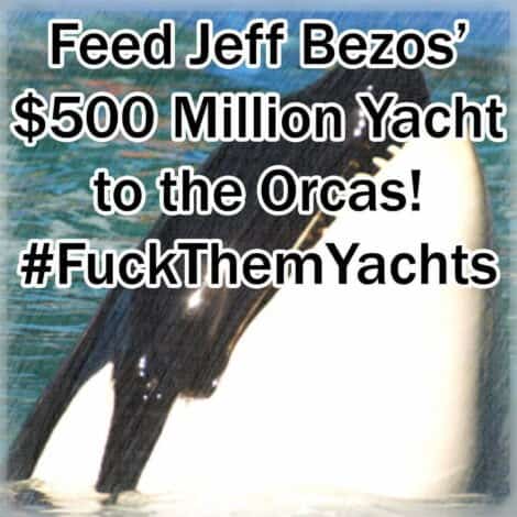 Feed Amazon billionaire Jeff Bezos’ $500 million Yacht to the Orcas! #FuckThemYachts… Now on our TeePublic and RedBubble shops!